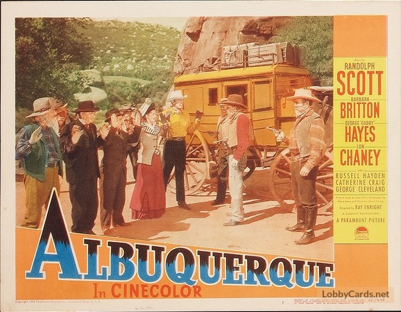 Randolph Scott, Barbara Britton, George 'Gabby' Hayes, Lon Chaney Jr., Russell Hayden, Catherine Craig