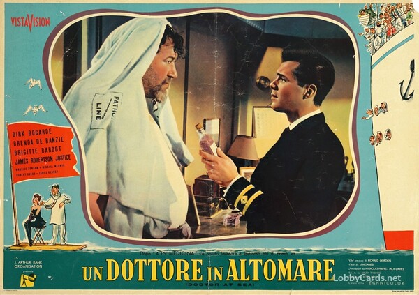 The second of the seven "Doctor" films, based on Richard Gordon's novels and released between 1954 and 1970. A bachelor doctor goes to sea to escape the boredom of shore practice, but studies the nurses more than medicine, and Brigitte Bardot is around.