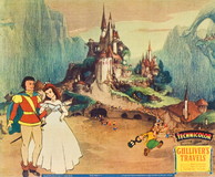 Gulliver washes ashore on Lilliput and attempts to prevent war between that tiny kingdom and its equally-miniscule rival, Blefiscu, as well as smooth the way for the romance between the Princess and Prince of the opposing lands. In this he is alternately aided and hampered by the Lilliputian town crier and general fussbudget, Gabby. A life-threatening situation develops when the bumbling trio of Blefiscu spies, Sneak, Snoop, and Snitch, manage to steal Gulliver's pistol.