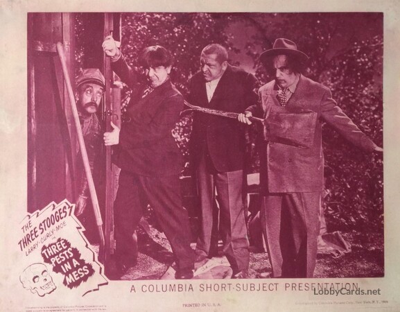 Curly Howard, Larry Fine, Moe Howard, Christine McIntyre, Brian O'Hara, Vernon Dent